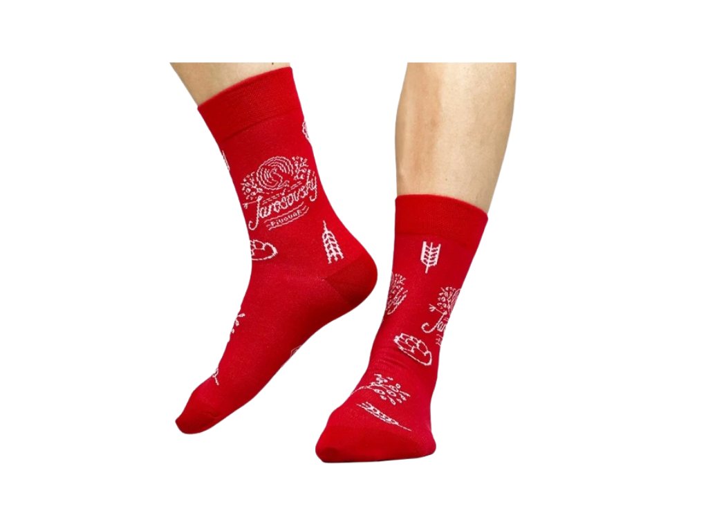 Tyto červené ponožky Jura nejsou jen tak ledajaké – vznikly přímo v srdci Slovácka, v Uherském Hradišti, ve spolupráci s ponožkárnou Mou Mou. S těmito ponožkami budeš mít nohy v teple a stylu, ať už si kdekoli. Podpoř regionální výrobu a ukaž, že Jarošovské pivo máš nejen v srdci, ale i na ponožkách!